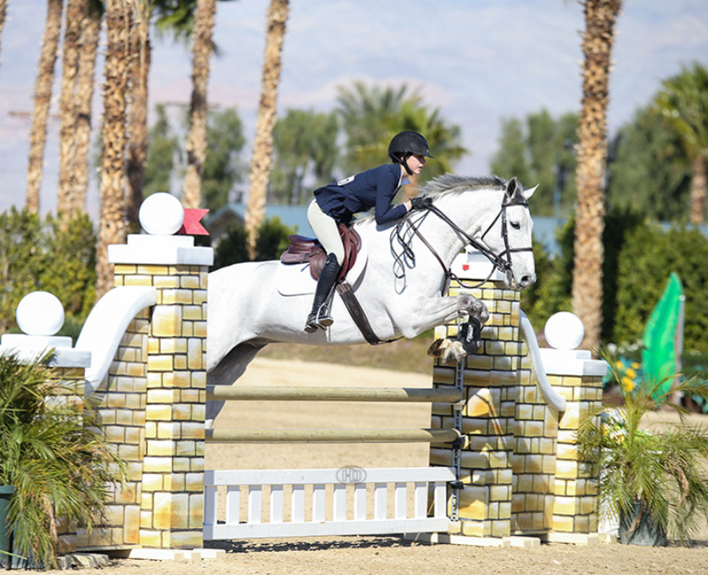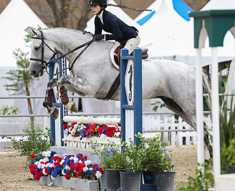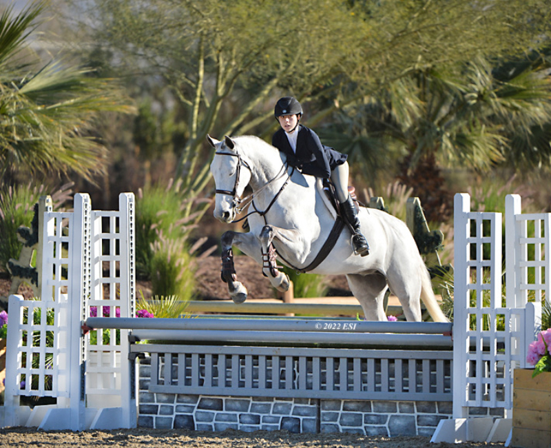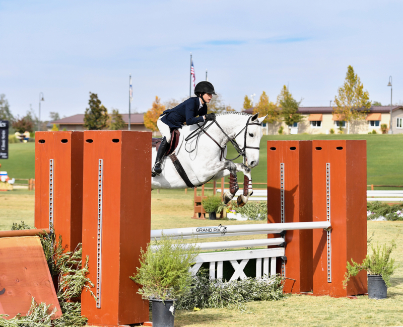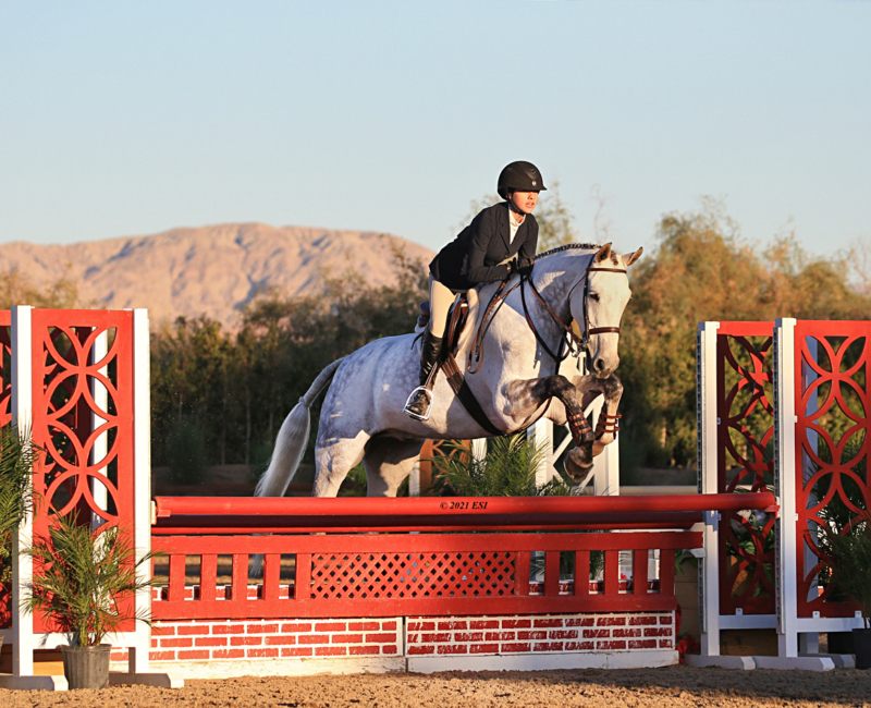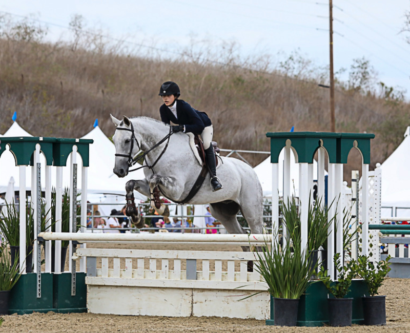 As long as I can remember, I have always been surrounded by horses. In the second grade, I had a friend who lived on a farm. I remember begging my mom to take me to her house to get the chance to see her horses. As soon as I spent time with them, I knew I wanted to dedicate myself to these animals. Shortly after, I approached my parents and asked them to start riding lessons. To my parents’ credit, they did everything they could to dissuade me from the horse world. They put me into almost every sport possible, hoping I would like something without the cost barrier of riding. But, they could not keep me away from horses. They decided to compromise and put me into vaulting lessons. However, I was drawn to the Hunter Jumper world. I spent hours watching Olympic show jumpers like McLain Ward and Beezie Madden and was amazed at how the rider and horse worked together to maneuver over the fences so effortlessly. I knew I wanted to jump. I started jumping lessons at my local riding academy in Woodside, California. It was when I moved to my first A Circuit barn – Windy Hill Equestrian – that I finally had the chance to compete in the Hunters with my first horse Libby. I went on to ride at several show barns before I started riding with Matt Sereni at Sterling View Farm. With his guidance and drive for perfection, I have competed in the PCHA 14 and Under Finals, CPHA Foundation Finals, and compete every year on the Thermal Circuit. After much dedication, I am now competing in Junior Hunter Finals 3’6” this summer along with USHJA Hunter Seat Finals and Hamel Medal Finals in the fall.